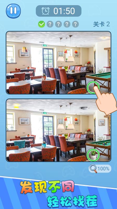 主打高密度关卡供给与多维玩法拓展,总计上线超百个原创场景,覆盖都市、古风、科幻、像素等视觉风格。除常规找茬外,还集成线索提示、区域放大、倒计时暂停等辅助功能,降低上手门槛,同时保留足够的策略纵深感。
