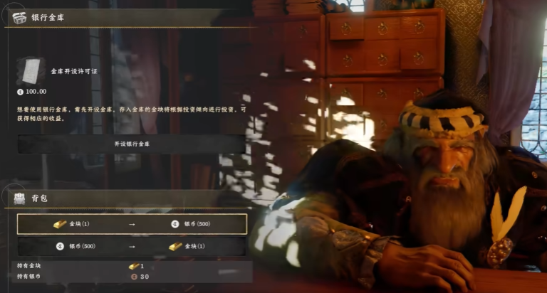 至此,雄狮大宅全部高价值目标均已收集完毕。若背包尚有余量,途中偶遇的实用杂物亦可一并收纳。最后打开大地图,前往银行柜台,选择将金条兑换为500银币——此举不仅解决初期资金压力,更是达成“完美开局”的标志性节点。