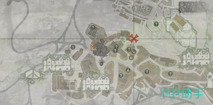 接着定位地图右下角带问号的标记点,沿路径抵达巨型风车建筑。此处可遇见暗巷商人,需向其购入面罩及两把通用钥匙——这两项道具为后续潜入行动的必备条件。