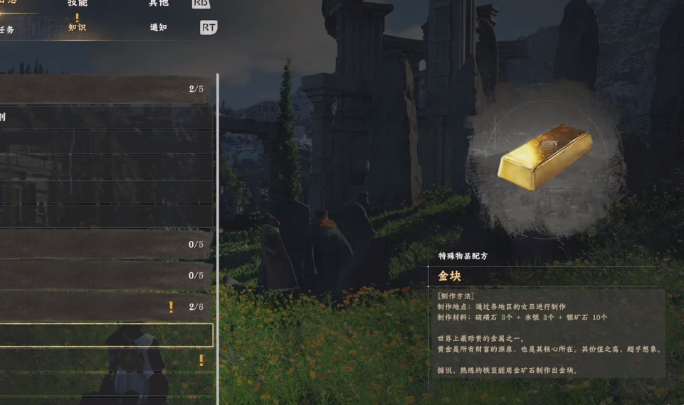 首推金块合成配方:消耗3个硫磺石、3个水银及10个银矿石。该配方打破常规物质转化逻辑,体现炼金术特有的神秘性与非线性规则。获取方式为完成赫尔南德南部“洞察尖塔”的环境解谜任务。材料采集方面,推荐前往斯科拉斯敦研究院向学者赠送对应礼物品类——需注意,身着不同颜色制服的学者所回馈的资源类型存在固定映射关系,银矿石主要由灰袍学者提供。