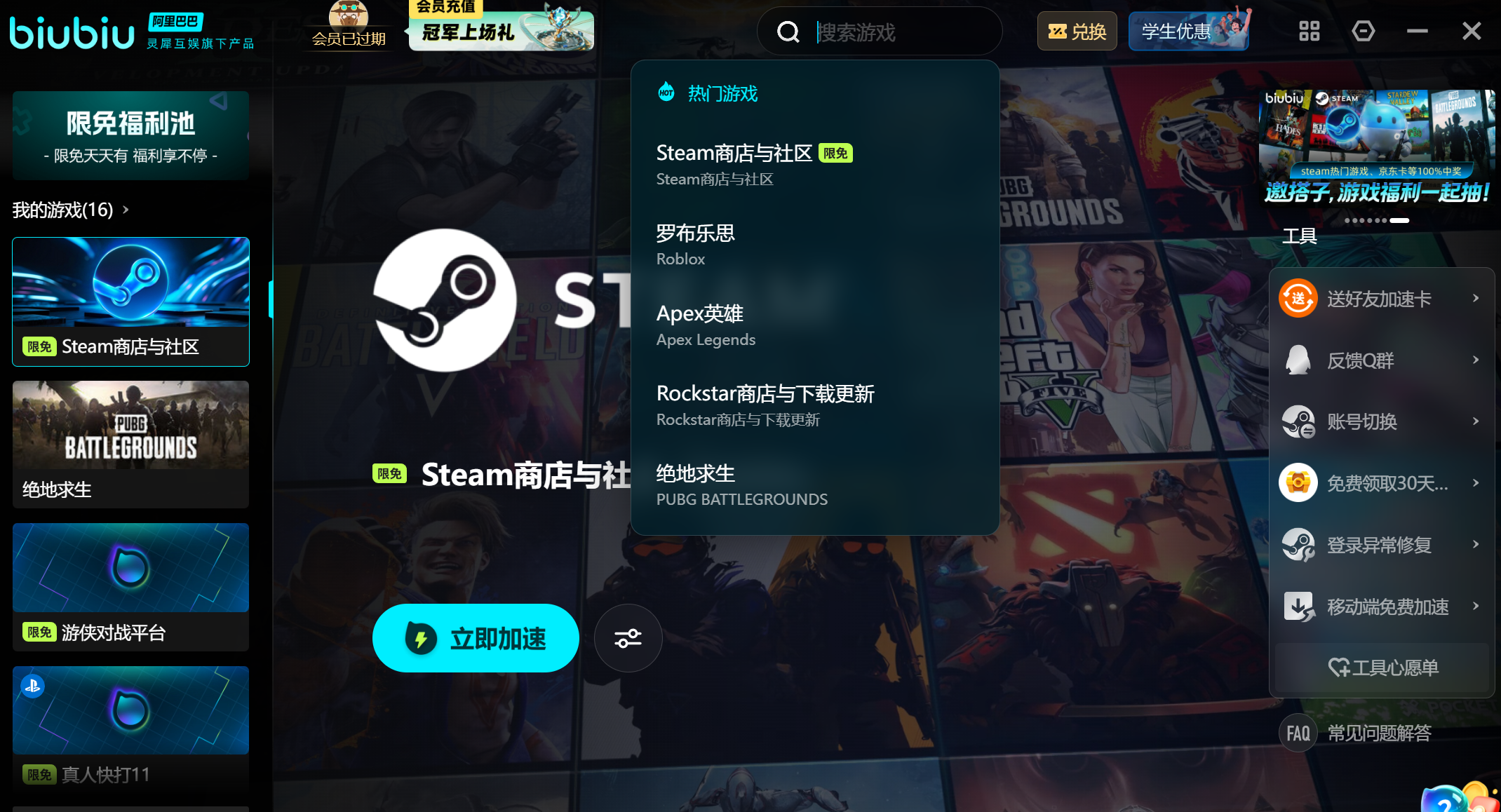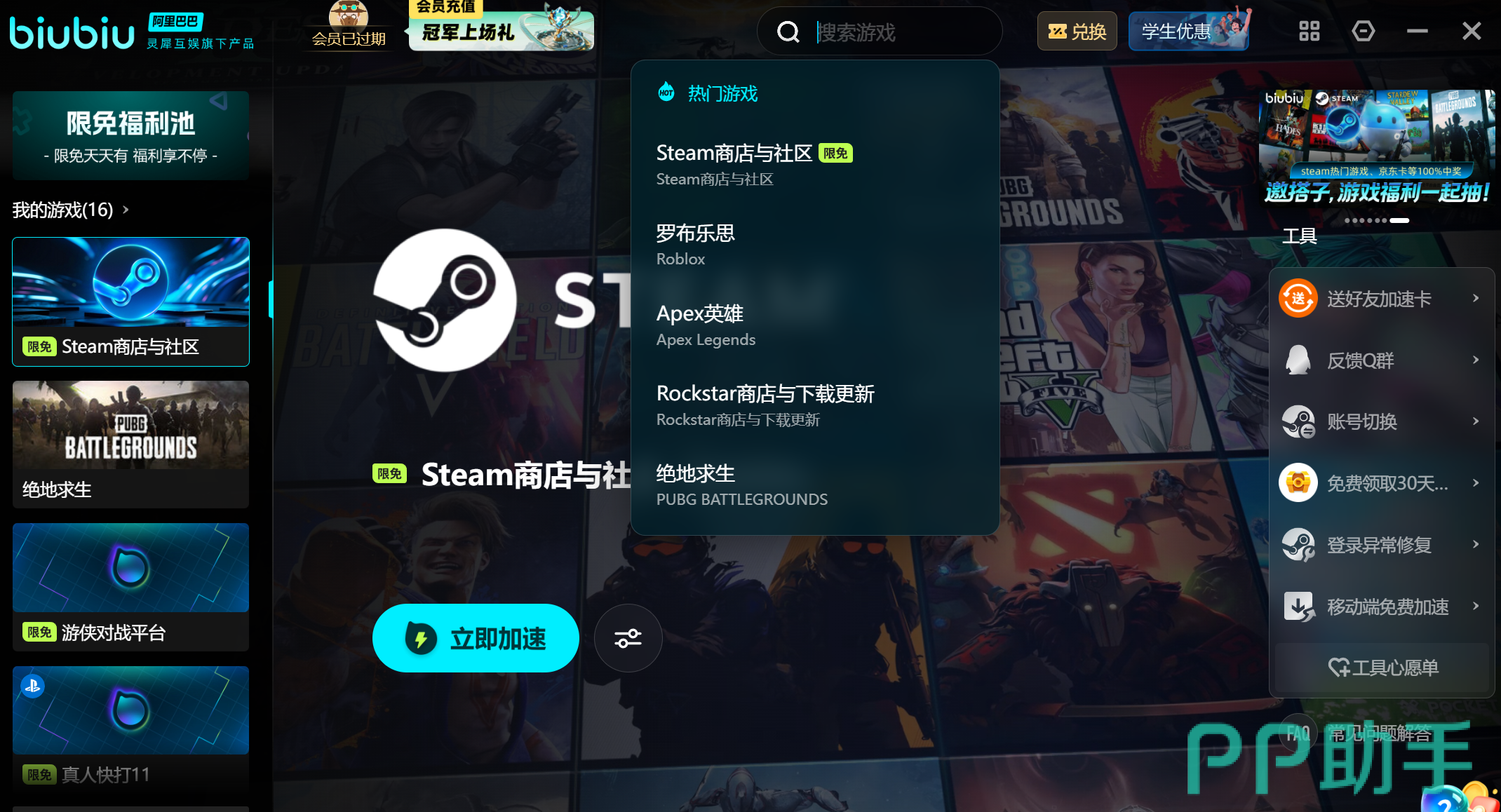 针对PC端用户,biubiu加速器同样提供完整支持,覆盖Steam、Epic、WeGame等主流平台联机游戏。安装流程简洁:访问官方渠道获取PC客户端安装包,建议部署于非系统盘(如D盘或E盘),避免占用C盘资源。启动后,在主界面搜索栏输入目标游戏名称,点击“一键加速”即可自动启用帕拉斯3.0智能路由引擎,动态匹配低抖动、高吞吐的专用通道。全程无需手动配置DNS、代理端口或QoS参数,零技术门槛,新手用户5分钟内即可完成部署并进入游戏。