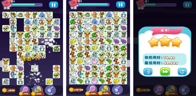 游戏在经典双点连线规则基础上,加入“连击强化”“道具连锁触发”等衍生机制。每关预设不同消除目标,如指定宠物数量、限定步数通关等,增强目标感。画面采用高饱和度配色方案,配合轻快音效,营造明快活泼的游戏氛围。内置三类辅助道具:提示器、重排器、范围清除器,均通过关卡奖励获取,不设付费直购入口。