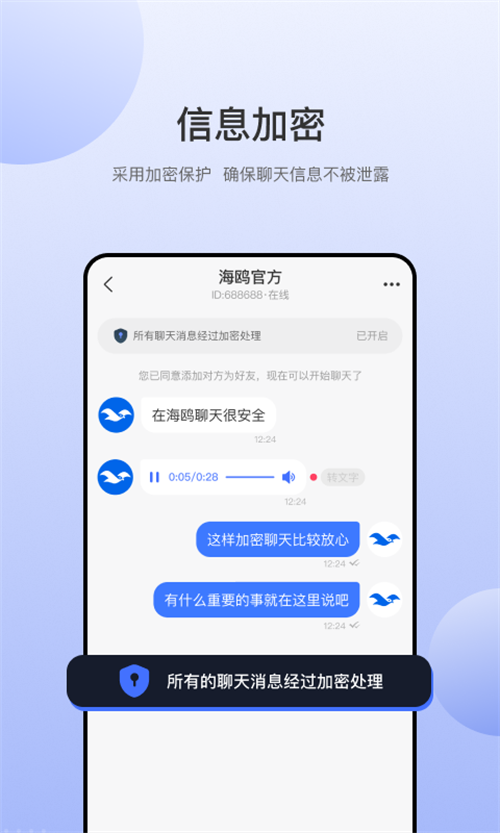 《海鸥》主打的是“匿名性”。注册时不需要手机号邮箱,也不用绑定任何社交账号,系统随机生成一个ID就可以直接使用。小编觉得这一点对非常看重隐私的玩家来说简直是福音。操作相对来说也是比较简单的,下载后点击“快速注册”,系统自动分配一串数字ID就能添加好友聊天了。所有消息同样经过端到端加密,而且服务器不保留任何日志。适用那些不想留下任何数字足迹的讨论,比如政治敏感话题的交流或者企业内部匿名举报通道的建设。