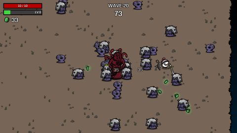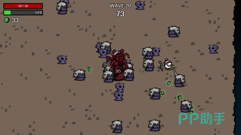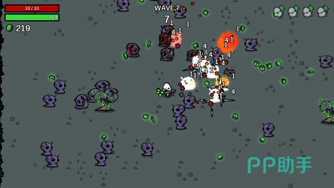 玩法的核心就是生存加上构建,上手真的比较简单,但是精通是有深度的。玩家需要操控角色在场景中移动,可以切换手动瞄准去精准的打击,新手也可以轻松的上手,高手可以轻松的秀操作。战斗中在打败怪物之后就可以收集材料和经验,每一波间隙进入商店之后,就可以用材料去购买武器,或者是升级属性。慢慢的就可以打造专属的战斗流派,比较亮眼的设定就是六武器同池。除了个别的角色之外,大家还可以同时装备6把武器,可以自由的搭配。