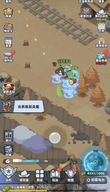 在游戏的前15天,玩家们处于前期的开荒阶段,此时你最重要的事情就是囤积各种物资和发育了。小编建议每日任务是一定要完成的,这也是不最稳定的获得各种物资的渠道,尽量把木材,石材等最基础的材料给拉满。探索周边的时候,尽量不要离基地太远,否则如果体力不足的话,无法及时赶回基地休息,很有可能会导致角色损失属性。