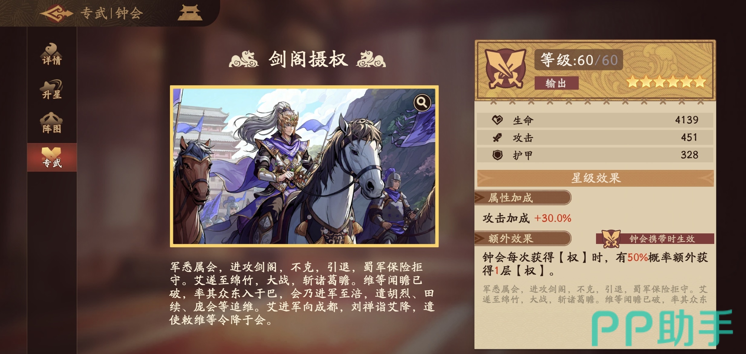 综上所述,觉醒后的钟会已摆脱早期冷门印象,成长为兼具机制深度与实战强度的无双级输出武将。其成长路径明确、养成成本合理、战术价值突出,值得玩家在资源规划阶段优先投入培养,并根据战局需求灵活调度上场。