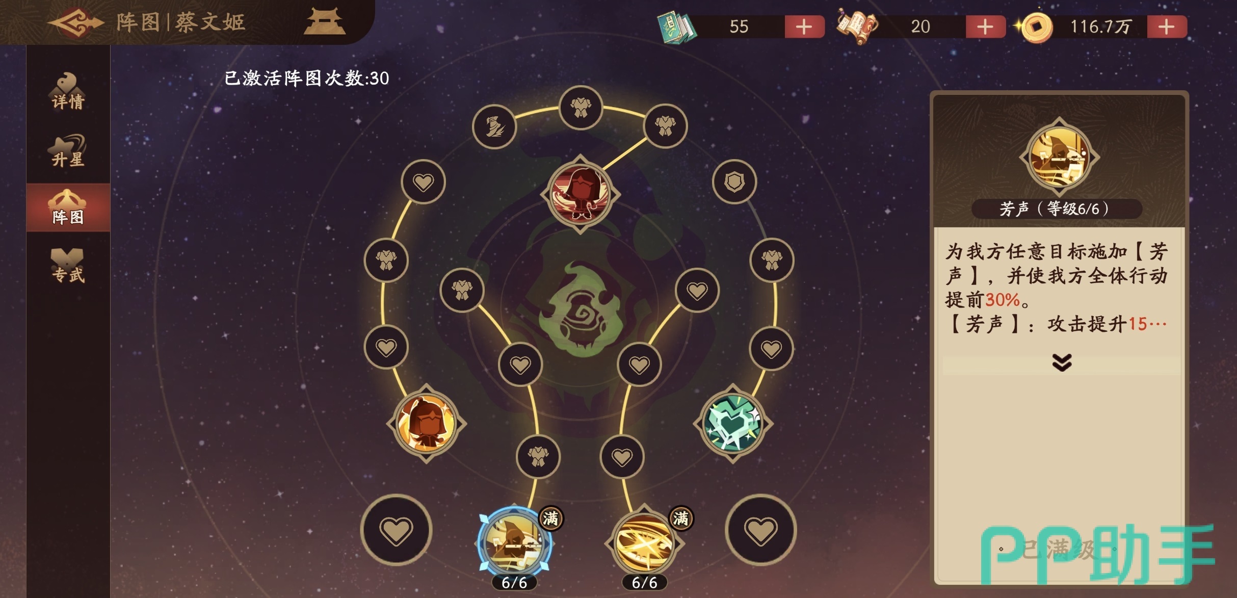 区别于仅提供增益或减益的传统辅助,蔡文姬的核心价值在于对全队出手时机的精准干预。其大招可使己方全体行动提前30%,并为目标单位额外提升15%攻击力;同时,在天赋加成下,该技能还会对敌方全体施加“悲歌”状态,提升其受到的伤害。这一组合效果,使其在PVE副本攻坚与PVP对抗中均具备不可替代的战略意义——尤其在双方拉条能力接近时,蔡文姬的先手优势往往直接决定战局走向。