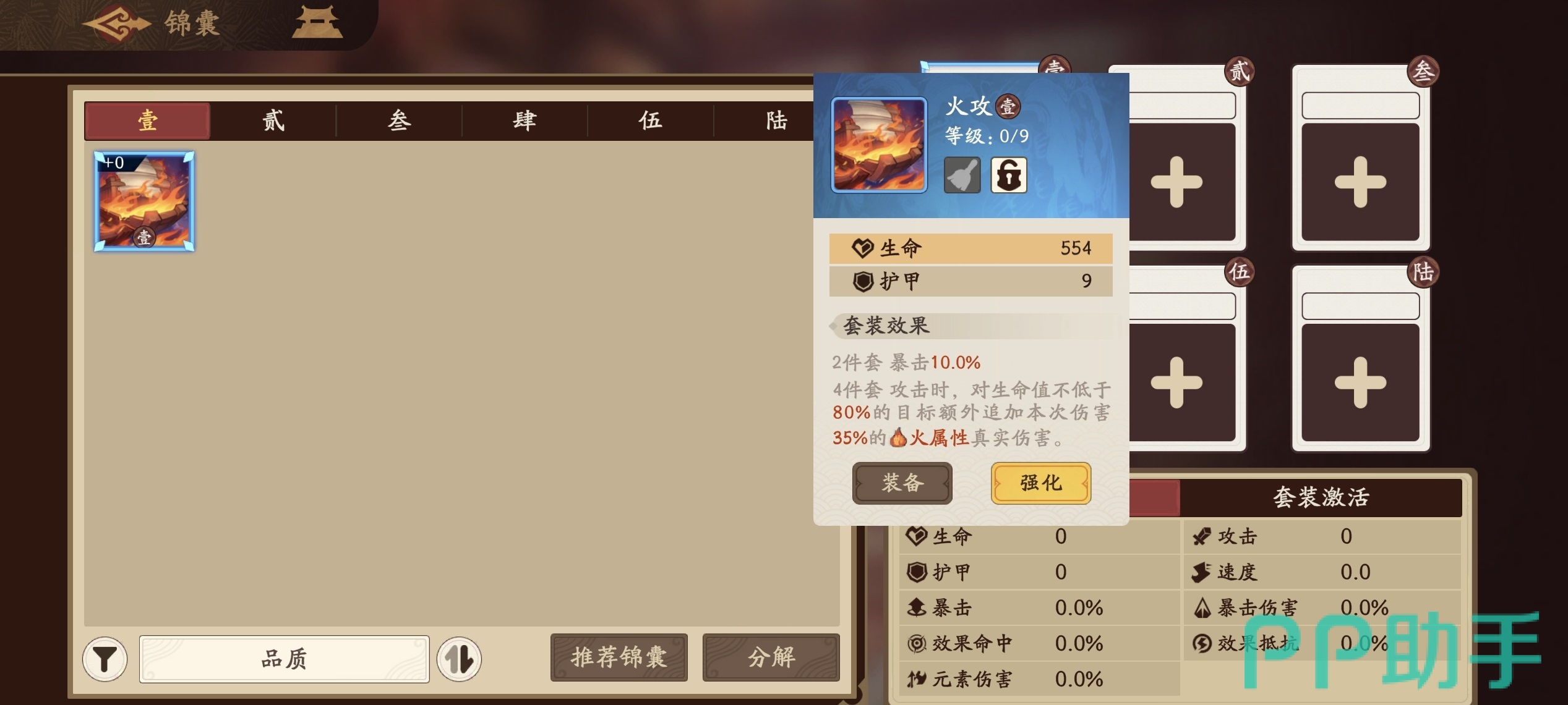 该武将的整体成长逻辑高度聚焦于必杀技循环,因此在前期资源投入阶段建议优先强化其爆发链完整性。专属武器首选【火烧赤壁】,契合度最高;次选方案为【冷箭破敌】或【拖刀技】,实际佩戴时以星级更高者为准。锦囊配置方面,【火攻】为最优解:两件套提升暴击率,四件套可在每次攻击时追加一次火属性附加伤害;备选方案可考虑【决斗】以增强单点压制能力。阵容搭配上,推荐起手组合为周瑜、孙尚香、夏侯氏、徐盛——此四人组成型快、资源消耗低,开局即可通过拉条机制实现全队先手,由周瑜完成首轮AOE压血线,再由徐盛接续收割残局,是当前版本公认的高效开荒阵容。