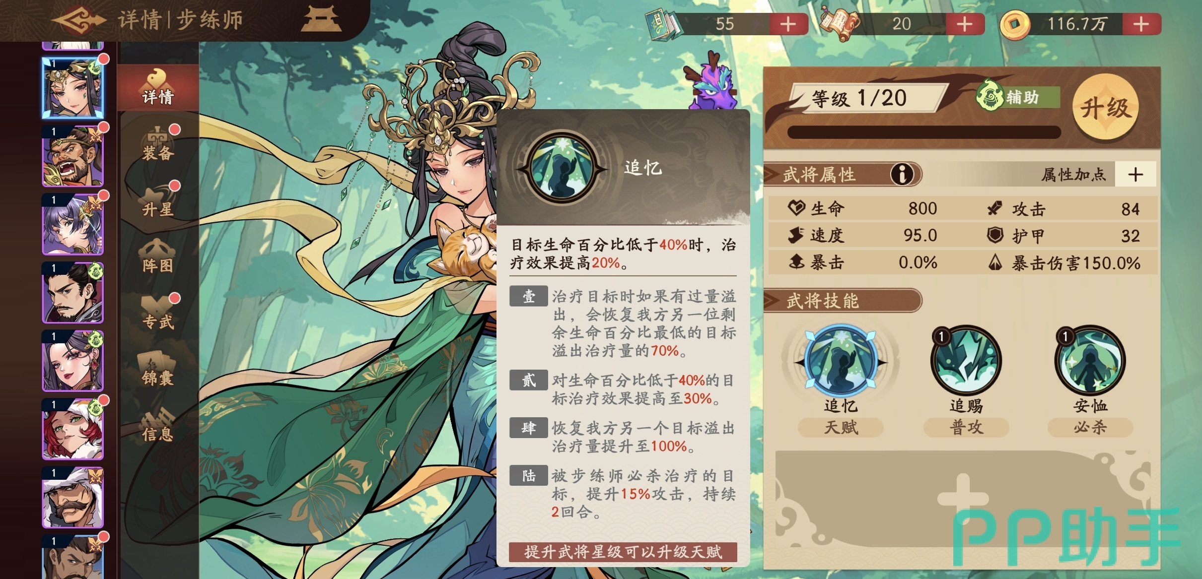 综合来看,觉醒步练师虽非高稀有度武将,但胜在技能机制清晰、养成成本可控、泛用性广。对于资源有限的玩家群体而言,她能以较低投入达成前中期队伍续航闭环,是性价比突出的辅助选择。在合理配置装备与协同输出的前提下,其战场贡献度完全可满足主流PVE及部分PVP环境的需求。