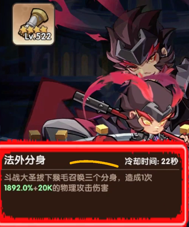 本套阵容以“双核驱动+功能补位”为设计思路,主C锁定为斗战大圣,副C选用徳莉法,剩余三席可根据资源情况灵活配置输出型英雄。其中斗战大圣承担全队最高爆发职责,其核心技能“法天象地”可召唤三尊元神分身自空中坠击,落地瞬间触发高额范围伤害(AOE),对群怪具备极强清场能力。该角色不仅基础输出倍率处于当前版本梯队顶端,更可通过装备词条强化、星级提升进一步优化大招释放频率与伤害系数,长期培养价值极为突出。