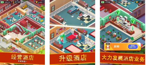 本作是款可以利用上帝视角完成经营酒店任务的mod手游,内置菜单的辅助可获取更多的经营资源,地图设定立体生动宛如真实进入到酒店中一般,开设酒店主题的玩法和休闲机制极为完善,操作简化同时具备萌系的风格辨识度更高,小白玩家也可以在mod内置菜单的帮助下顺利经营。