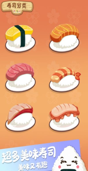 这款游戏主要就是做寿司和管理店铺,大家在游戏里就是寿司店的老板,刚开局会接到一些简单的任务,还有顾客的基础订单,顾客点什么大家就赶紧做什么,做好了之后会及时交。好了之后及时送过去,每一种寿司都有固定的做法,需要先选好米饭和海苔,鱼肉这些食材,再按照顺序组合起来,刚开始做的时候可能会慢一点,熟练之后就能快速的做好,看着顾客满意的离开,还非常的有成就感。
