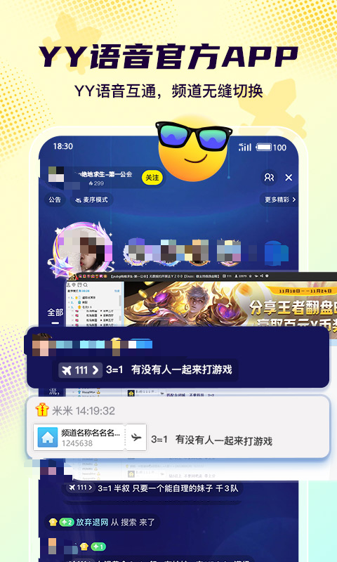 游戏开黑缺固定队友?YO语音深度整合主流竞技类游戏生态,全面覆盖《王者荣耀》《英雄联盟》《绝地求生》等热门项目。提供智能组队、语音连麦、赛事协同、娱乐互动(如热歌竞唱、角色扮演派对)等功能模块,并设有签到激励与赏金任务体系,助力玩家高效拓展游戏社交圈。