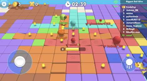 每局节奏都很紧凑,大部分玩家坚持三分钟就会落败,适合碎片化时间频繁挑战。跳跃操作是核心,支持二段跳操作,感觉距离不够能及时弥补,帮助取得更好成绩。吞噬进化机制,能不断消灭馅饼和糖果,还能击败其余玩家,不断变得壮大。不管体型大小都可能被压制,玩家要掌握技巧,才能笑到最后。