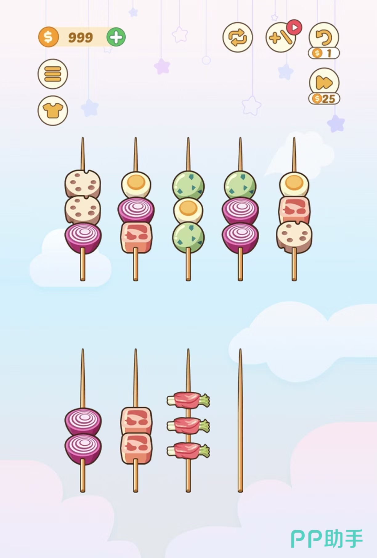 《BBQ排序拼图》这里的关卡会出现竹签,还有非常多的烧烤食材,要将相同的食材放到同一个竹签上,按照正确的顺序进行排列。自由的思考移动的顺序,全部排列正确才能前往下一关,通过关卡的不断提高,竹签和食材的数量会增加,只有相同颜色的食材才可以放到一起,还推出了多个不同的主题,挑战是不会受到时间要求,可以很轻松的进行体验。