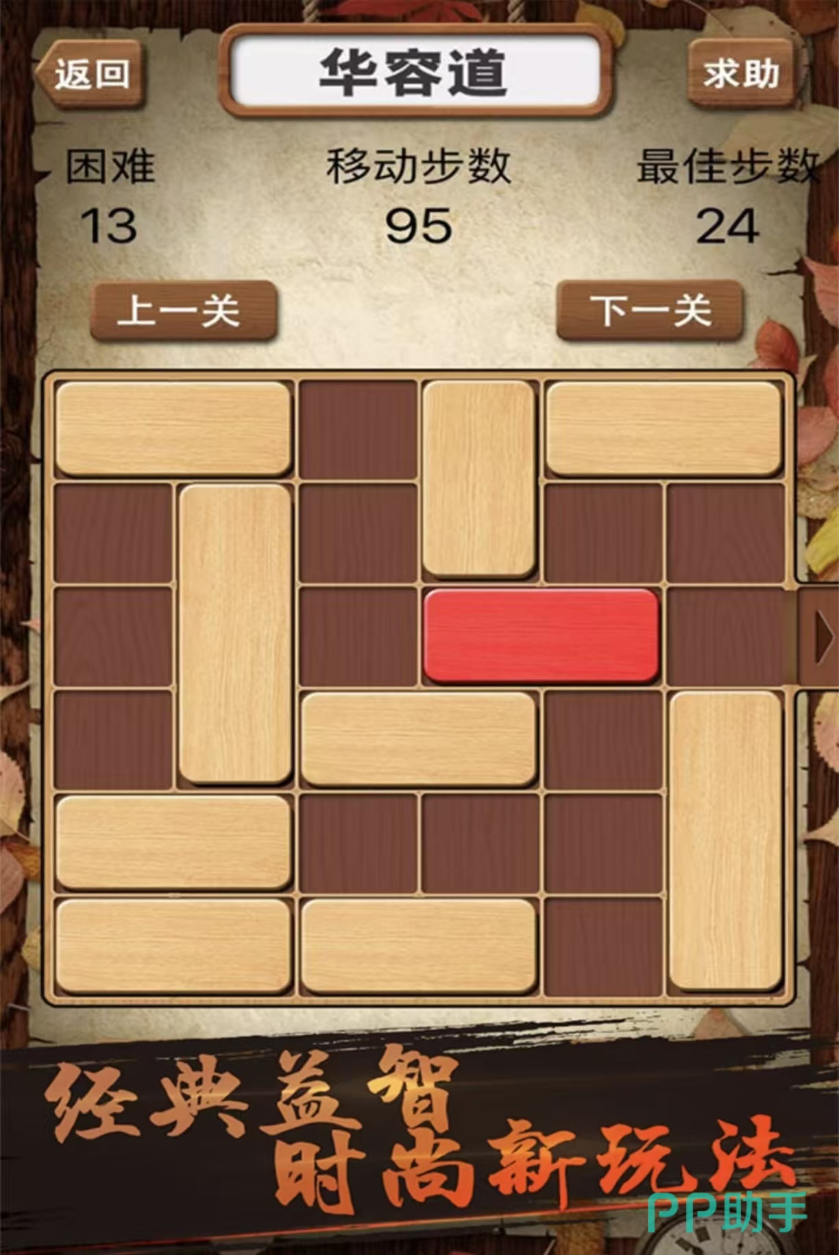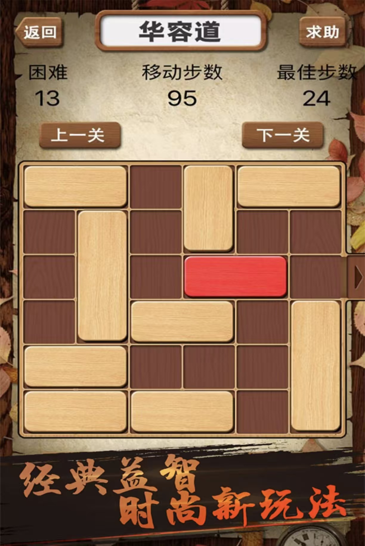 《华容道积木拼图》在这里可以进行思维的不断训练,可以先从初级的内容进行挑战,关卡内要用最少的步数完成,可以自由的移动场景内的木块。关卡内会出现两种不同颜色的木块,要将红色的木块移出去才算成功,这里的下方拥有撤销和重玩的功能。上方可以看到移动的步数,尝试运用不同的思维,自由的移动操作这里的方块。