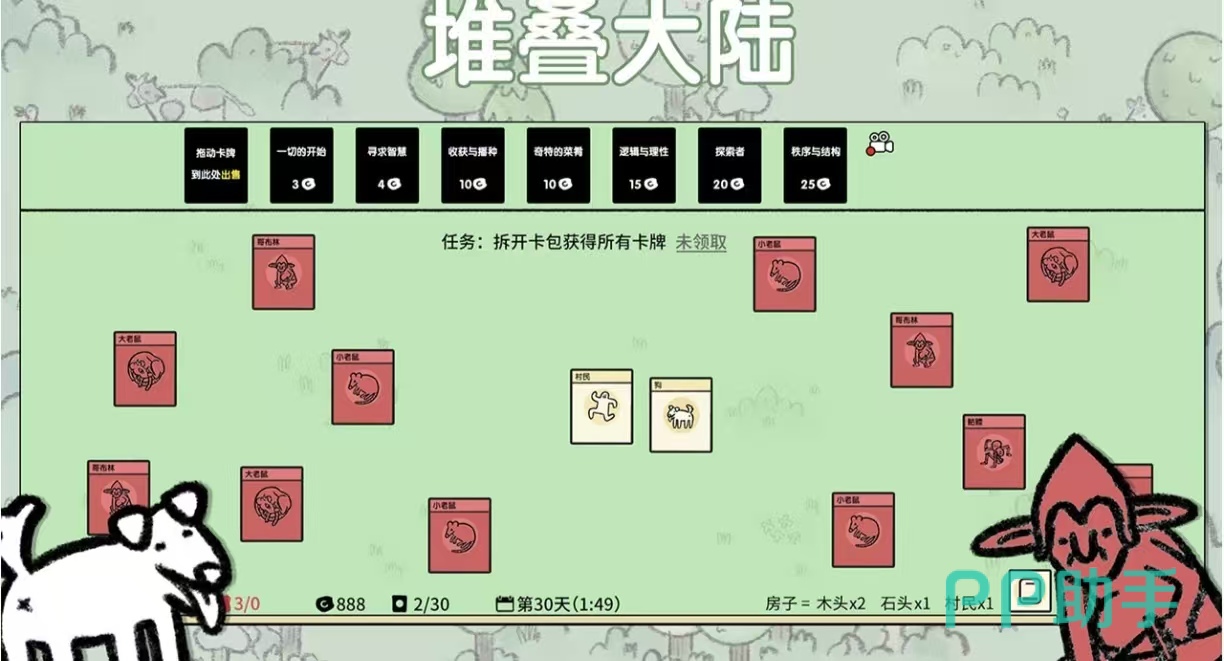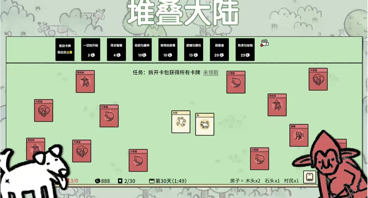 《堆叠大陆》将在这里不断利用卡牌经营一个小镇,可以感受到模拟经营的过程,有着很多不同的建筑物和收益,要满足一定的条件完成堆叠。可以通过出售卡片的方式获得金币,同时能够体验到非常丰富的烹饪和种植,也有可能会遇到邪恶的生物,可以用村民们在这里自动作战。这里有着不同的游戏进度和提示,可以不断用拖拽的方式合成道具。