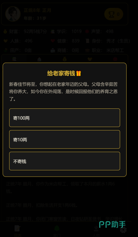 没有固定的人生路线的限制,游戏之中的人生模拟的体验,完全是按照玩家们自己的需要进行的,而且游戏当中的角色的背景非常惨,可以让玩家们更好的把自己代入其中,《凡人百年志:大明篇》这款手游还会有着独到的经营模拟的体验玩法,可以说命运全由自己掌控的。