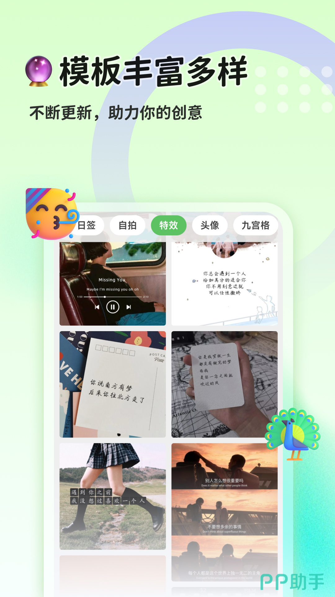 利用这款软件可以在图片上进行各种各样的后续制作,包括利用文字生成图片,随意修改背景颜色以及制作出能震撼朋友圈的九宫格对等,这些都是大家在日常生活中非常需要的操作,虽然不是专业领域的应用,但却是在日常生活中不可缺少的工具。
