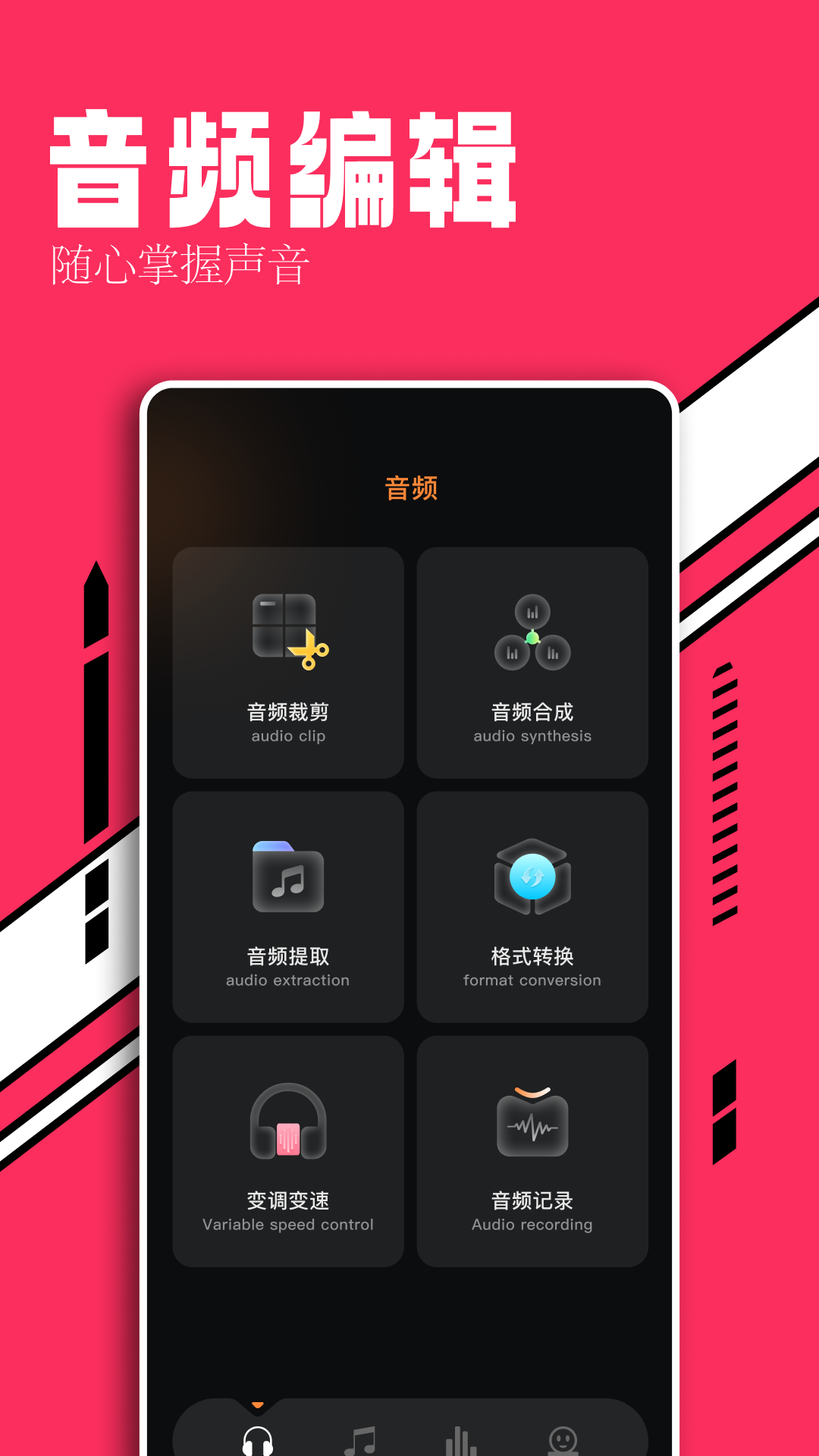 这是一个操作简单的音乐编辑app。它支持音乐各种格式的转换、裁剪、混音制作和提取功能,让音乐小白和专业的音乐人都能轻松玩转。同时,该app支持视频转音频,用户将视频文件里的某段声音提取出来,就能转换成为一个音频文件。