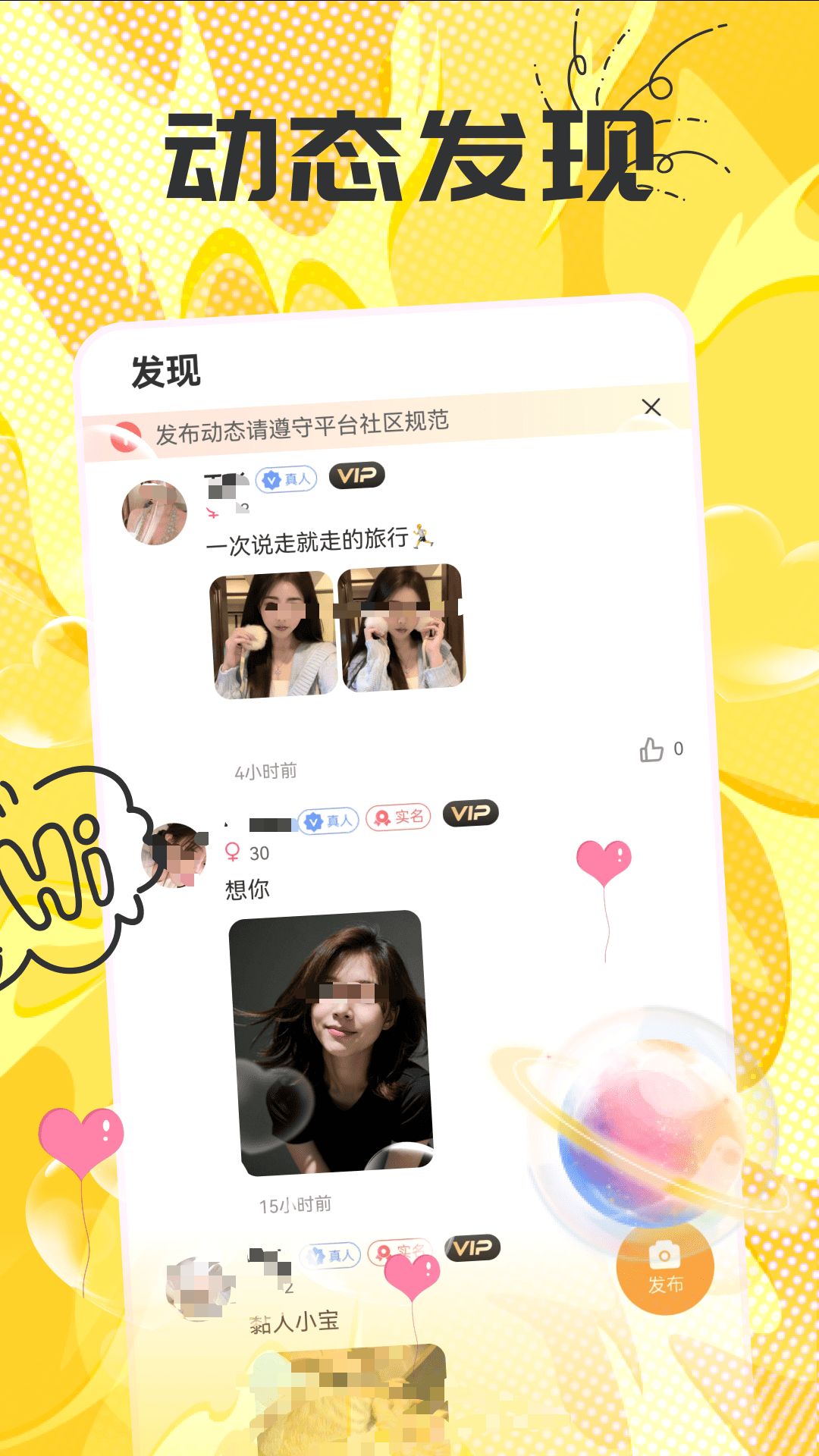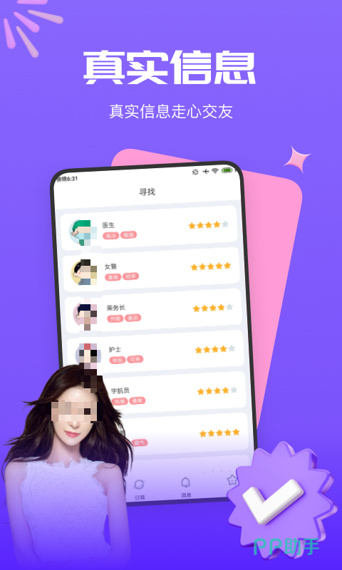 平台对用户的信息审核十分严格,主要就是为了给广大用户提供一个安全靠谱的交友平台。用户可以在该软件更好的做自己,认识更多有趣的朋友,提高社交圈子,注册流程十分简单,整个页面设计的十分简约,操作也很简单。