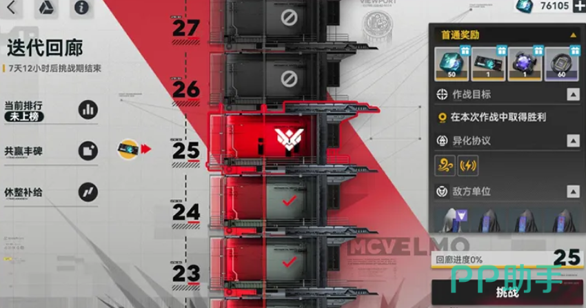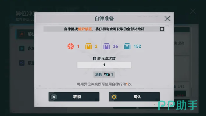 通关任意活动关卡均可获得净化指令、坍塌晶条等关键资源。其中,净化指令可在“异位冲突”中每周激活一次自律行动,自动扫荡指定探测区,一次性领取该区域全部道具奖励。活动全程设有实时排行榜,结算期结束后,系统将依据最终排名发放限定款“挑战者勋章”。