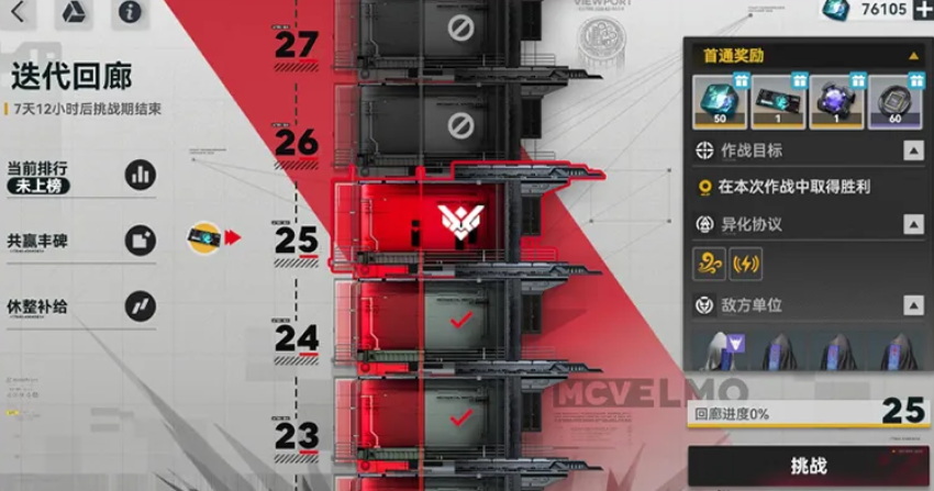 迭代回廊采用双阶段运行机制:共持续16天,其中前14天为挑战期,后2天为结算期。关卡以垂直层级形式展开,层数无上限,难度随层数递增而动态提升,考验指挥官的编队配置、资源调度与战术应变能力。