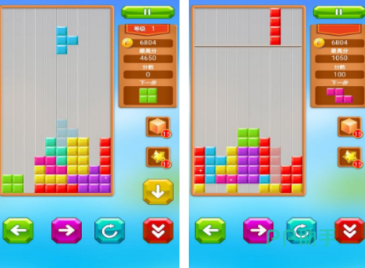 这款以经典的俄罗斯方块玩法为主的游戏,通过下落式的方式合理的移动,使每一行无论是各种颜色,只要被摆满以后就能够消除,如果你想要挑战更高分数的话,必须要在玩的时候仔细的点击相应的按键,无论是直接让方块掉落到底部,或者是利用旋转的方式填充每一行,都要随机应变,才能帮助玩家得到更高的分数。