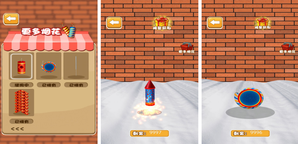 以上文章小编盘点出的烟花爆竹游戏都是模拟器作品,模拟了真实的烟花特效以及燃放的过程,相信小伙伴们应该知晓有趣的烟花游戏下载推荐哪个好了吧,烟花爆竹燃放爆炸的过程看上去十分绚丽,真实给人带来一种极为喜庆的特殊感觉。