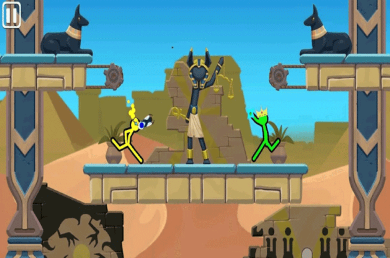 主要就是一对一的快速格斗玩法,玩家操控火柴人形象,在不同的场景里和各种对手对战。游戏里能选的武器特别多,数量超过五十种,徒手对战或者用激光剑都可以,不同的武器打出去的感觉都不一样。游戏还做了真实的物理碰撞效果,玩家连放技能的时候,能感受到实打实的格斗体验,游戏里还设计了埃及神庙这些不一样的对战场景。