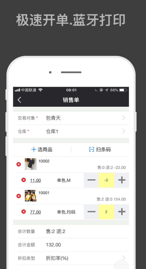 君涛科技针对服装鞋帽、茶叶、数码这些行业做了定制,多规格管理是核心卖点。颜色尺码规格容量型号五种属性可以自由组合,完美适配多SKU商品,开单的时候快速选择规格,避免发错货。开单效率很高,10秒就能完成销售退货出入库操作,支持蓝牙便携打印,一键打印条码小票吊牌,还能生成自定义二维码方便客户扫码付款。