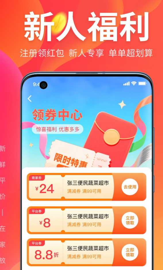 主打社区生鲜的一站式采购平台,聚焦社区周边门店资源。打通线上选购和线下自提配送到家全场景,满足家庭日常生鲜与日用百货需求。构建了社区化生鲜网络,整合周边优质生鲜店和超市,商品覆盖新鲜果蔬肉蛋水产米面粮油零食酒饮家清日百。推行食谱驱动购物模式,推送应季菜谱和烹饪教程,一键关联所需食材解决吃什么买什么的问题。
