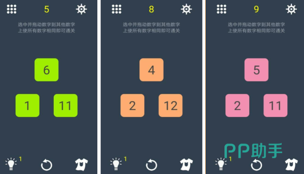 该游戏的核心玩法为每轮将会给出玩家三个数字,玩家需要通过拖拽操作转移数值,而偶数会分出一半给目标数字,奇数则会全部转移,玩家要做的便是让最终三个数字完全相等。该游戏的玩法看似简单,实则需要提前预判步数和策略,因此在玩的过程中,自然也会强化玩家的加减运算与倍数关系的理解,适合逻辑锻炼哦!