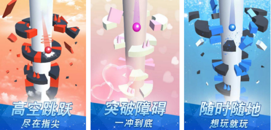 采用了经典的跳跃玩法为核心,只不过利用3d的高清画面给大家带来极强的视觉冲击力,其中将会有色彩缤纷的球球,需要跟随着音乐的节奏完成。跳跃的任务,操作方式特别简单,手指滑动屏幕或者是左右旋转的方式就可以让小球尽情的坠落,但是在此过程当中一定不能和障碍物发生碰撞。只要穿越层层的障碍物之后就能够获得更高的分数。
