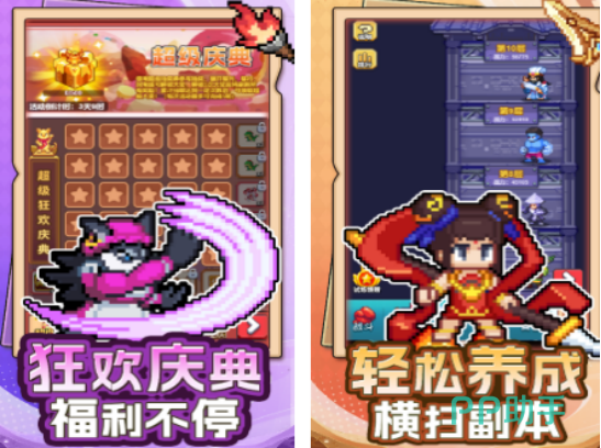 主打休闲挂机体验的像素风角色养成手游。内置海量英雄图鉴,涵盖近战、远程、法师、辅助等多定位角色,支持自由编队与阵型调整。战斗采用自动+手动双模式,副本难度梯度合理,资源获取稳定。角色可通过装备强化、技能升级、星级突破等方式持续成长,日常登录、成就系统与限时活动提供丰厚代币与稀有材料,助力玩家稳步提升战力。