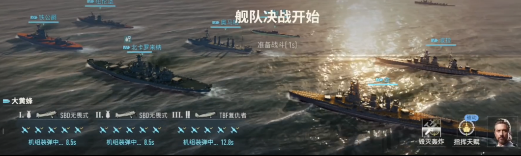 由于核心玩法聚焦海上大规模舰队对抗,主界面采用宽幅布局,战斗区域占据屏幕主要空间。玩家当前使用的指挥官形象固定显示于主界面左上角头像位,该形象即为实际出战的指挥官本体,其外观不可单独更换,需通过切换已解锁的指挥官来实现视觉与功能双重更新。