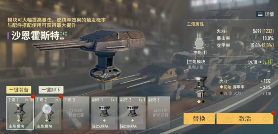 当战舰等级达到25级后,将开放模块装配功能。不同模块可针对性强化射程、暴击率、装填速度或防空性能等细分指标。针对沙恩霍斯特偏重主炮输出、防空短板明显的特性,推荐优先装配反制类无人机,并搭配具备防空增益效果的模块组合。同时,舰长系统亦构成关键战力加成点——霍金斯作为专属适配舰长,可为其提供专属攻击增幅,进一步释放输出潜力。