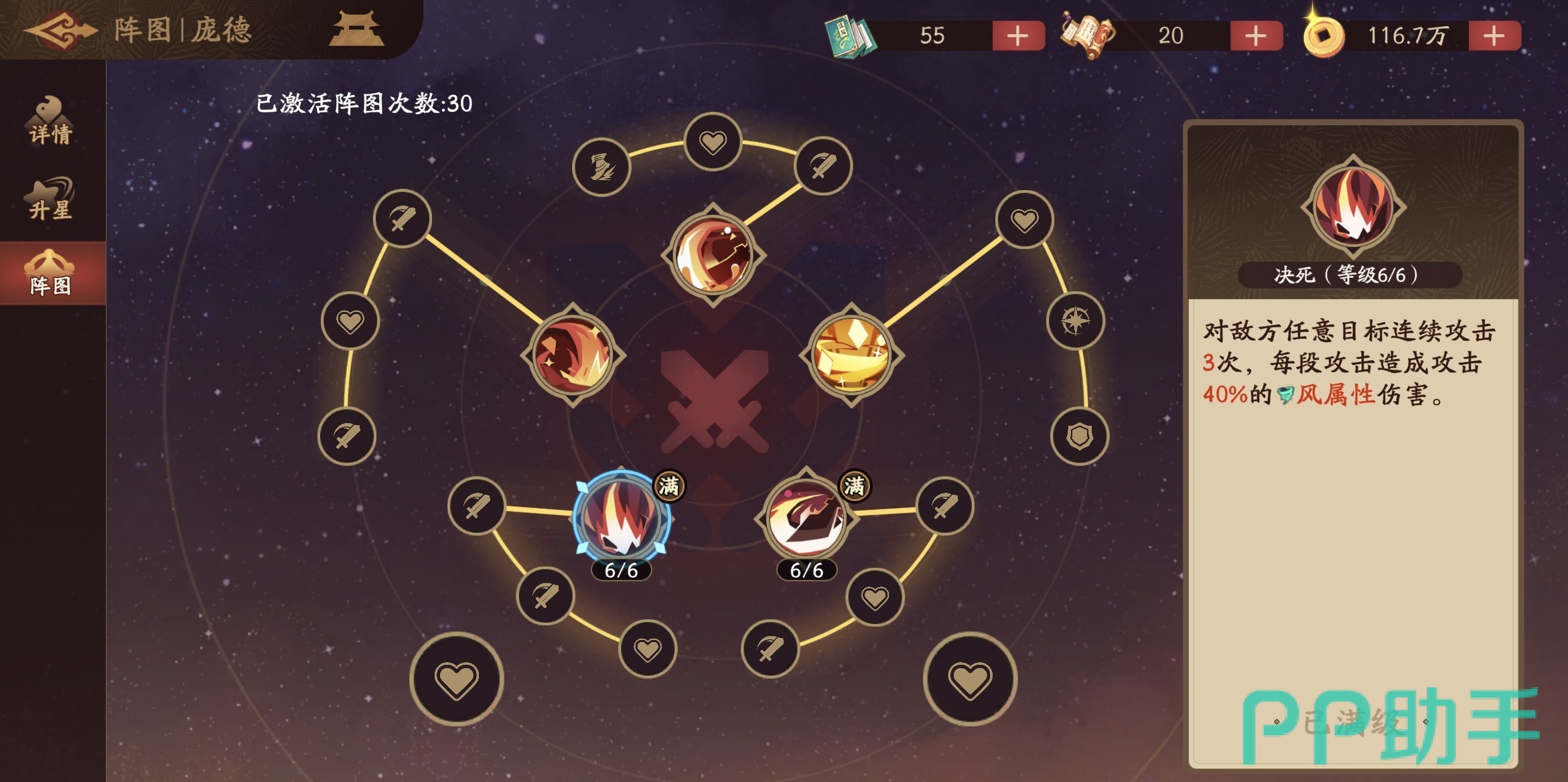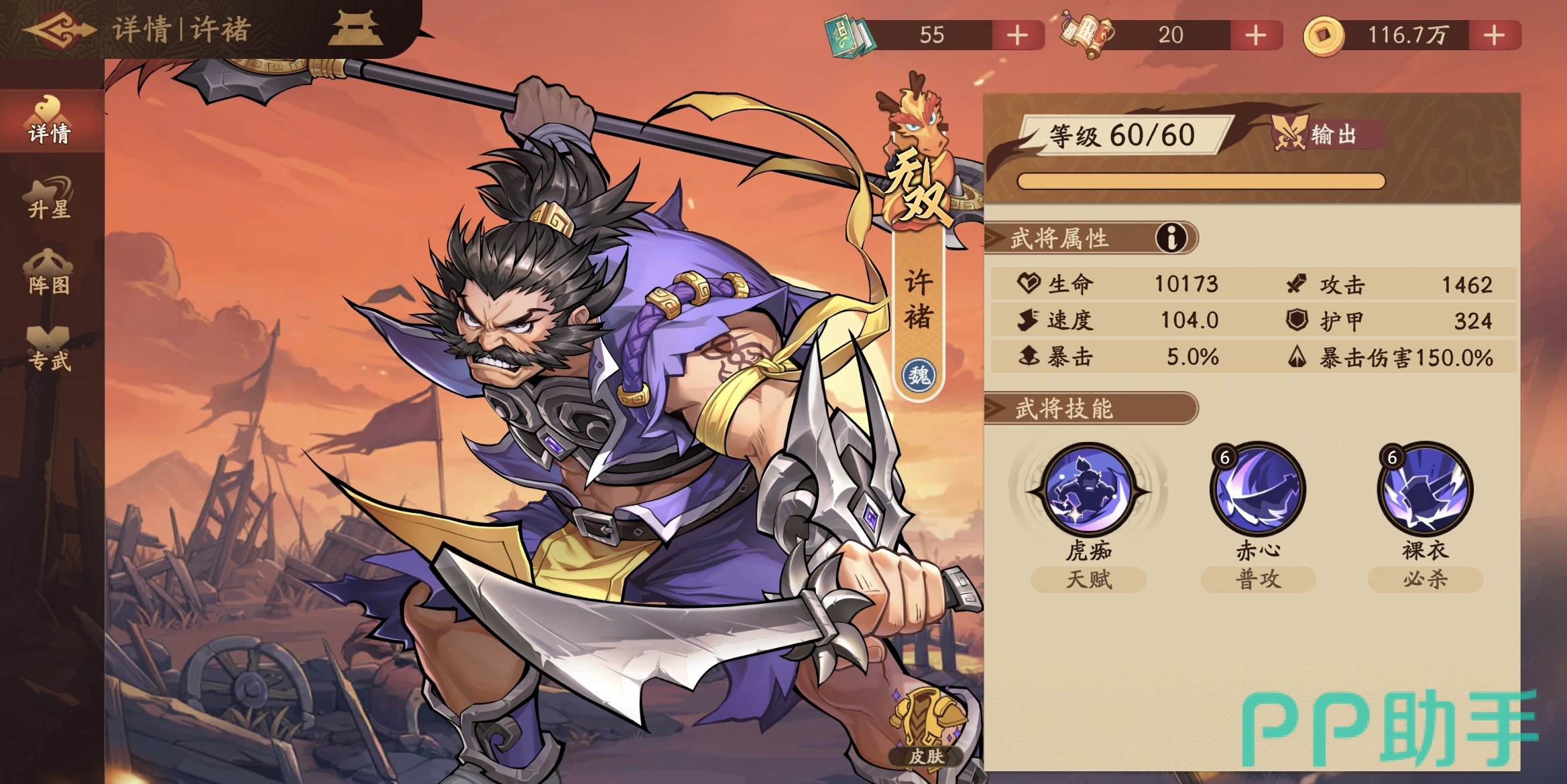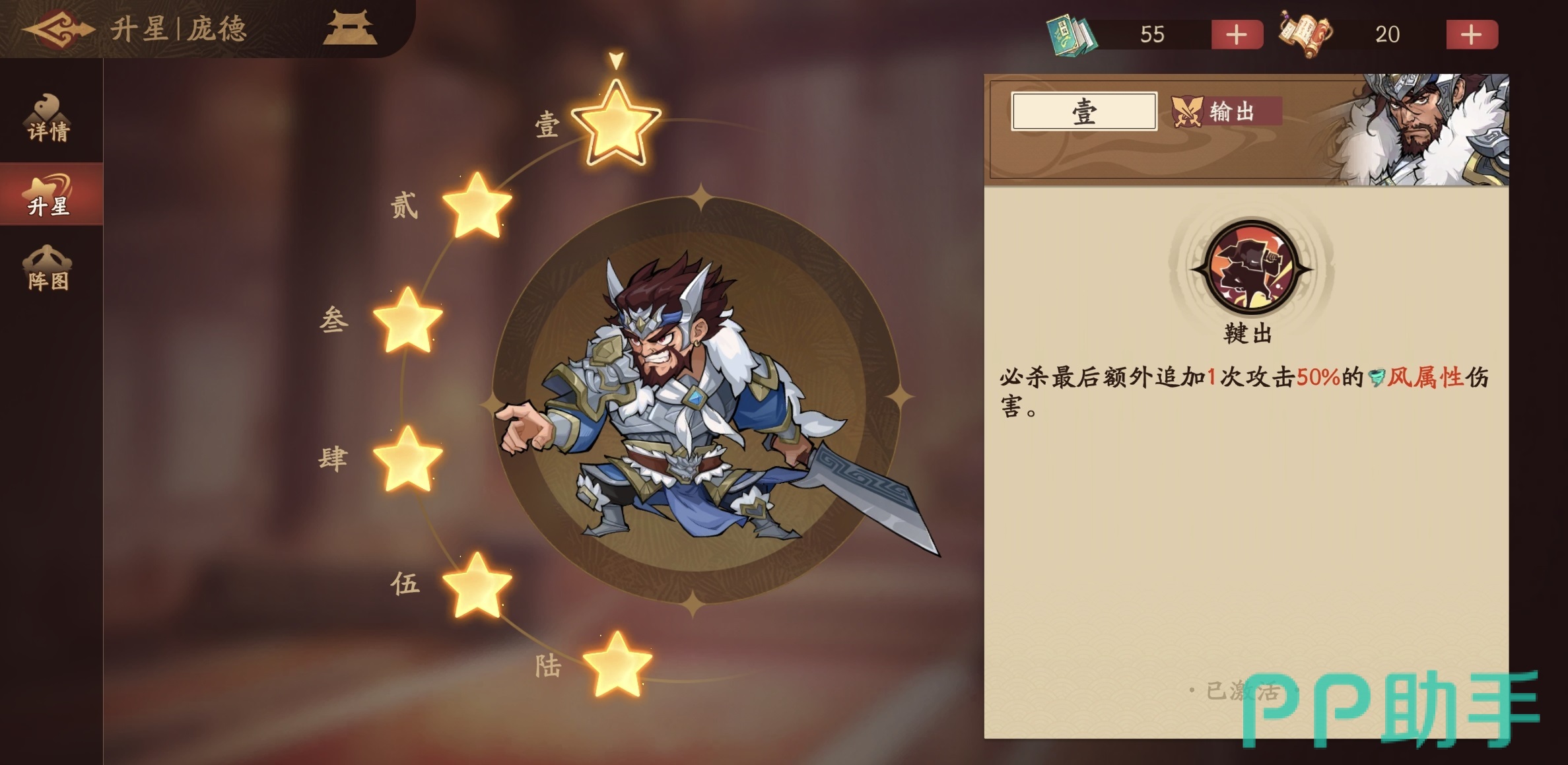 怒气系统是本作战斗节奏的底层引擎,多数高阶武将的大招释放、连携技触发及阵法激活均依赖稳定怒气积累。因此,具备怒气削减能力的角色,在PVP对抗与高难度副本中具有天然战术优先级。庞德虽属概率型触发(非必然生效),但其单次技能即可达成三次怒气干扰机会,整体覆盖率高于同类单段消怒角色。正因如此,他更适合部署于需精准打断敌方关键大招的场景,属于典型的“功能特化型替补输出”。若主力输出尚未成型,可考虑以庞德搭配许褚组成双C体系:许褚虽当前使用率偏低,但开启大招后不仅自身普攻伤害显著提升,还可强化同排友军普攻倍率——这一增益同样作用于庞德的三段基础攻击,形成间接强化闭环。