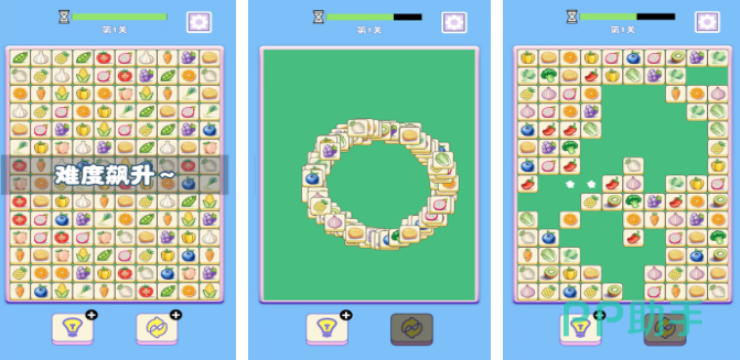 以果蔬拟人化形象构建视觉体系,涵盖番茄、胡萝卜、西兰花等数十种常见食材。消除判定基于图案一致性,触控区域优化明显,误触率低。前期关卡侧重教学引导,中后期引入障碍物、限时目标与连击加成等进阶要素,考验空间预判与路径规划能力。地图场景丰富,包含农场、厨房、超市等主题区域,增强沉浸感。