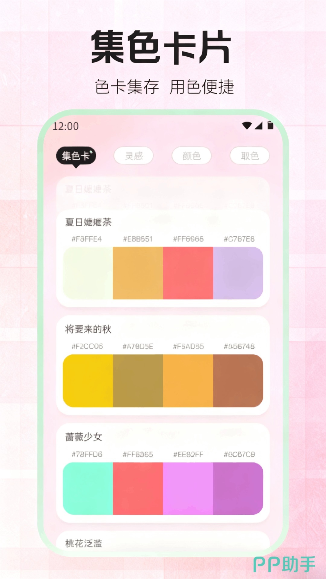 聚色阁支持用户对于收集过的一些颜色进行收藏,将其做成对应颜色的色卡,创作过程中需要使用到某种颜色的时候,只需要打开对应的色卡,便可以这种颜色填充到我们指定的位置上,非常便捷。