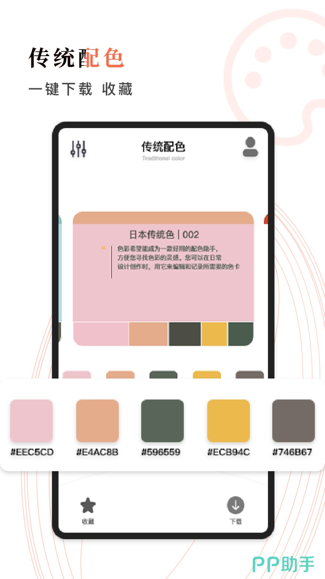 配色是一门学问,不管是设计还是绘画,想要做出一副好的作品都需要配色的帮助。而颜色拼接有着各种流行的配色供用户学习,用户可以将喜欢的配色进行下载、收藏,方便下次使用,同时还可以在颜色拼接上自己进行颜色的搭配,调试出属于自己的专属配色。