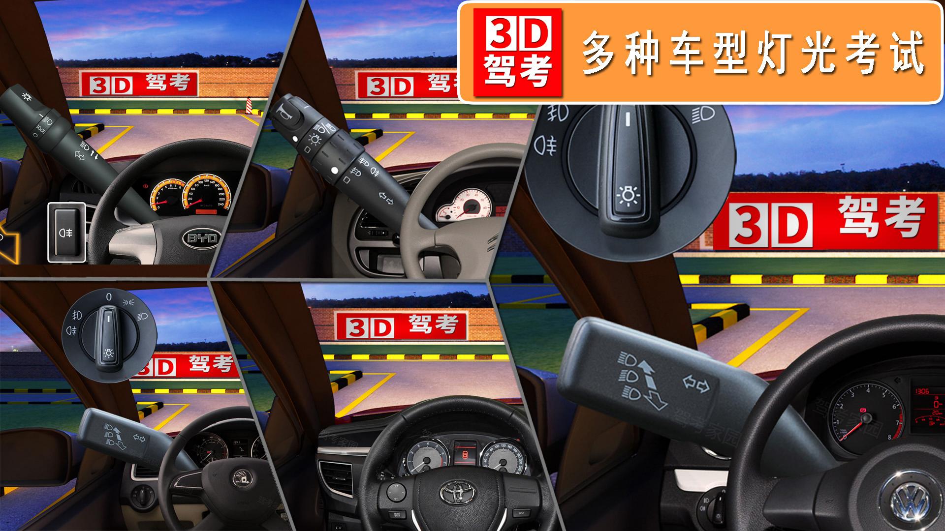 全国各地的驾考在项目上或者规则上,或多或少都有一点区别,而全国驾考3D考场模拟练车可以根据用户所在地的考试项目和规则为用户提供相应的模拟服务,其中就包括了半坡起步、倒车入库等,以及最容易忽视的灯光模拟考试。