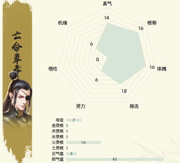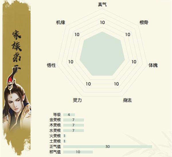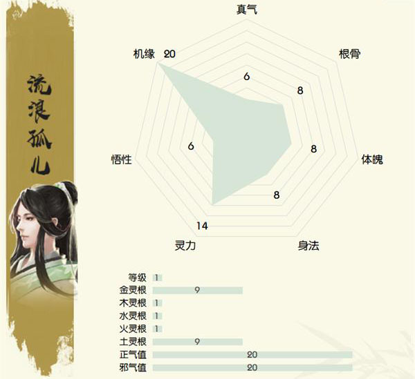 在五种身份中,玩家开局可以选择寒窗弟子和流浪孤儿。流浪孤儿的机缘和灵气属性比较好,寒窗弟子的悟性和灵气属性好,虽然这两个身份开局比较穷,但是后期发展比较好,修真成长不错,完美超越其他身份。