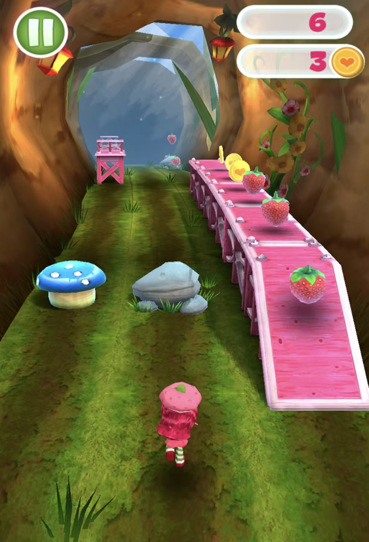 《草莓公主甜心跑酷》首先营造了非常可爱的跑酷画面,草莓公主需要不断完成野外采集,会获得很多新鲜的水果种类,用来制作美味的水果蛋糕。在采集的过程中会遇到很多障碍,操控角色不断的进行躲闪,这里制作好的食物还可以进行出售,换取的金币可以用来购买道具,帮助玩家获得更多的水果品种,跑酷的过程中是一个很治愈的画面。