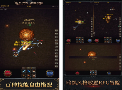 以暗黑的风格所打造的放置动作rpg游戏,除了融入了冒险元素,大家可以在这里面探索深渊,还可以利用元素技能搭配以及天赋养成,这样的内容当中施展自己的技能。每一次通关的时候,都会遇到各种各样的挑战。想要通过更多关卡,进入更多黑暗的环境中,要做好百种技能之间的搭配,也可以施展自己的战斗力。