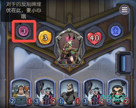 战斗界面实时显示敌方场上随从配置、生命值总量及反制卡数量(具体类型不可见)。需特别注意:反制卡具有隐藏性,仅知其存在与张数,实际生效需满足对应触发条件;咒术卡为一次性效果,施放即结算;随从卡则拥有独立攻击力与生命值,部分附带特殊机制如嘲讽、再生或连击等。