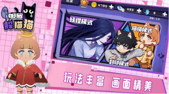 基于经典的躲猫猫玩法为基础,在非常阴森又诡异的鬼屋环境当中,大家将要展开一场追逐或者是躲藏之战,其中有两种不同的阵营任由大家挑选,您可以选择抓捕者,又可以选择躲藏者,但是这两种阵营都有着不同的要求和规则,比。比较考验的就是大家的观察能力,在3d卡通风格渲染的情况之下,营造出沉浸式的恐怖氛围。