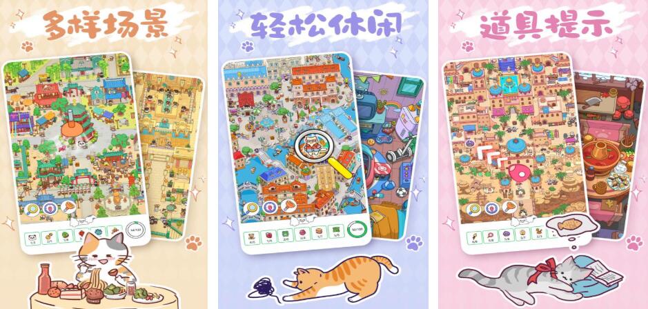 《疯狂找东西》的核心玩法就是在一堆不同的风景中找到目标,而在这过程中还可以使用放大镜等道具来加速通关。探险的过程中部分关卡还会有小猫加入,而小猫也会成为玩家的伙伴,帮助玩家共同找寻物品。手游提供了丰富的场景,包括公园、海滩和山庄等,随着关卡的推进,物品隐藏的方式也会越来越复杂,非常考验玩家的观察力以及反应速度。