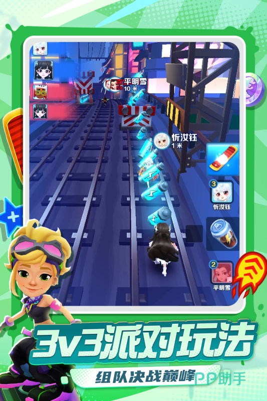 《地铁跑酷》这款游戏为玩家们提供了非常完善的个人随机应变的玩法,在玩法上为玩家们提供了循序渐进的跑酷类型,三条主路的地图设计也是十分的新颖的,游戏中的各种道具和障碍物都可以进行互动或者是躲藏,还有超多的金币等任务道具能为玩家