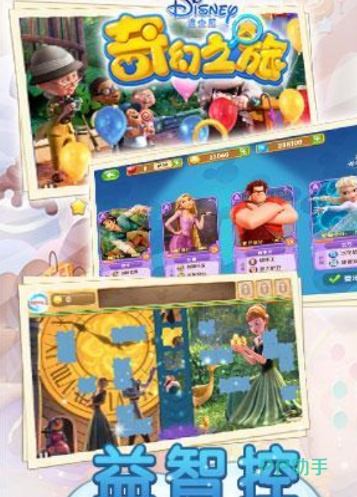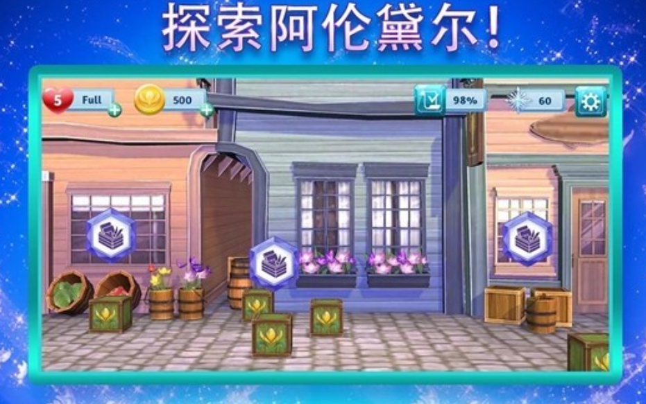 三消跟城堡建造融合的玩法,通关消除关卡收集资源,然后用来修复重建阿伦黛尔王国。电影经典剧情有完整复刻,还延伸了原创冒险线,冰雪森林、冰晶城堡、北山秘境这些场景都能解锁,角色对话跟动作还原电影设定。消除关卡融合了冰晶消除、障碍破除、限时收集、道具合成这些机制,道具搭配角色专属技能。